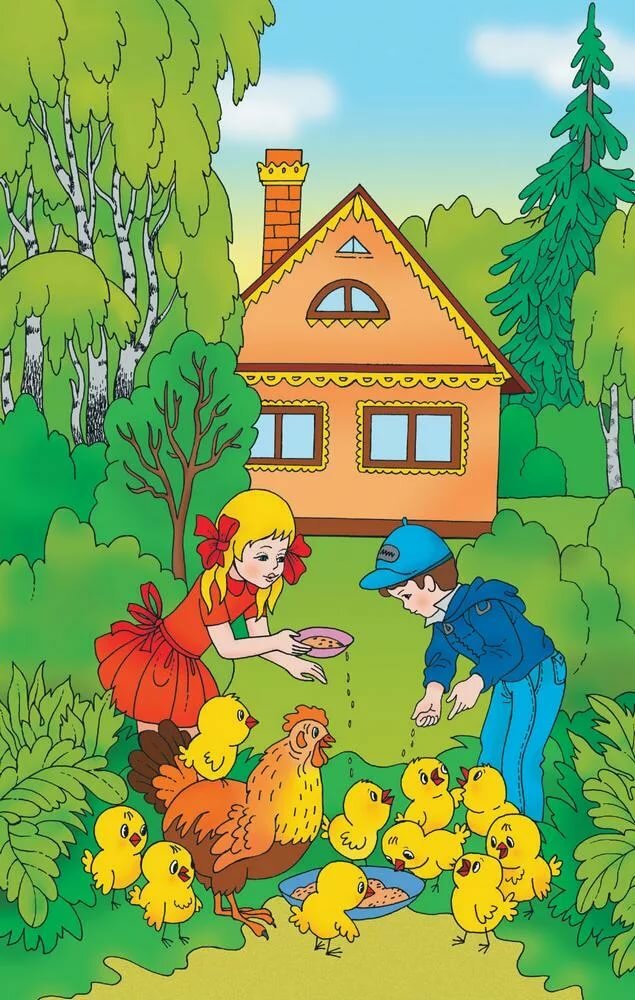 Объясните ребенку, что курицу, у которой появились цыплята, называют клушей.