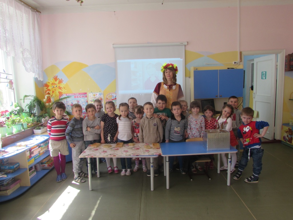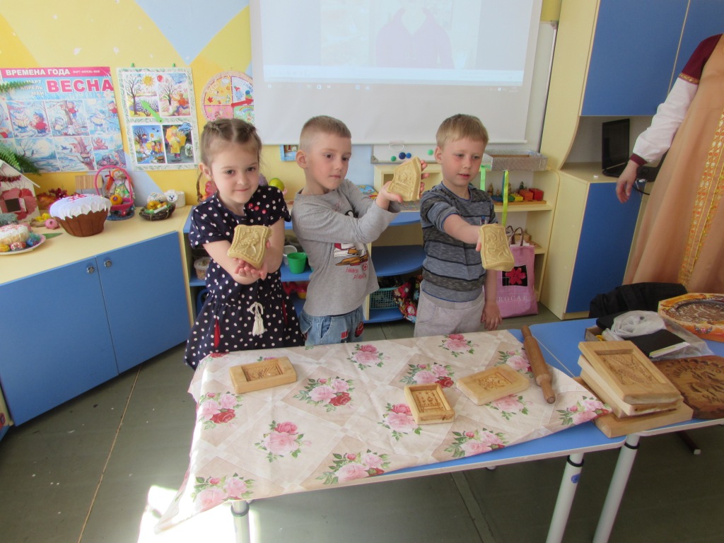 В рамках совместного проекта «Здравствуй, музей!» в детском саду заведующей сектором музея Яковлевой С.А. 05.05.2017 года было проведено занятие «В гости к печатному прянику». Светлана Александровна познакомила воспитанников средней группы с историей печатного пряника, провела мастер-класс по его изготовлению. В заключении дети угостились вкусным городецким пряником.